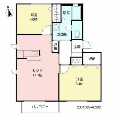 2LDK(LDK11.8帖 洋室6.4帖 洋室4.6帖) |
